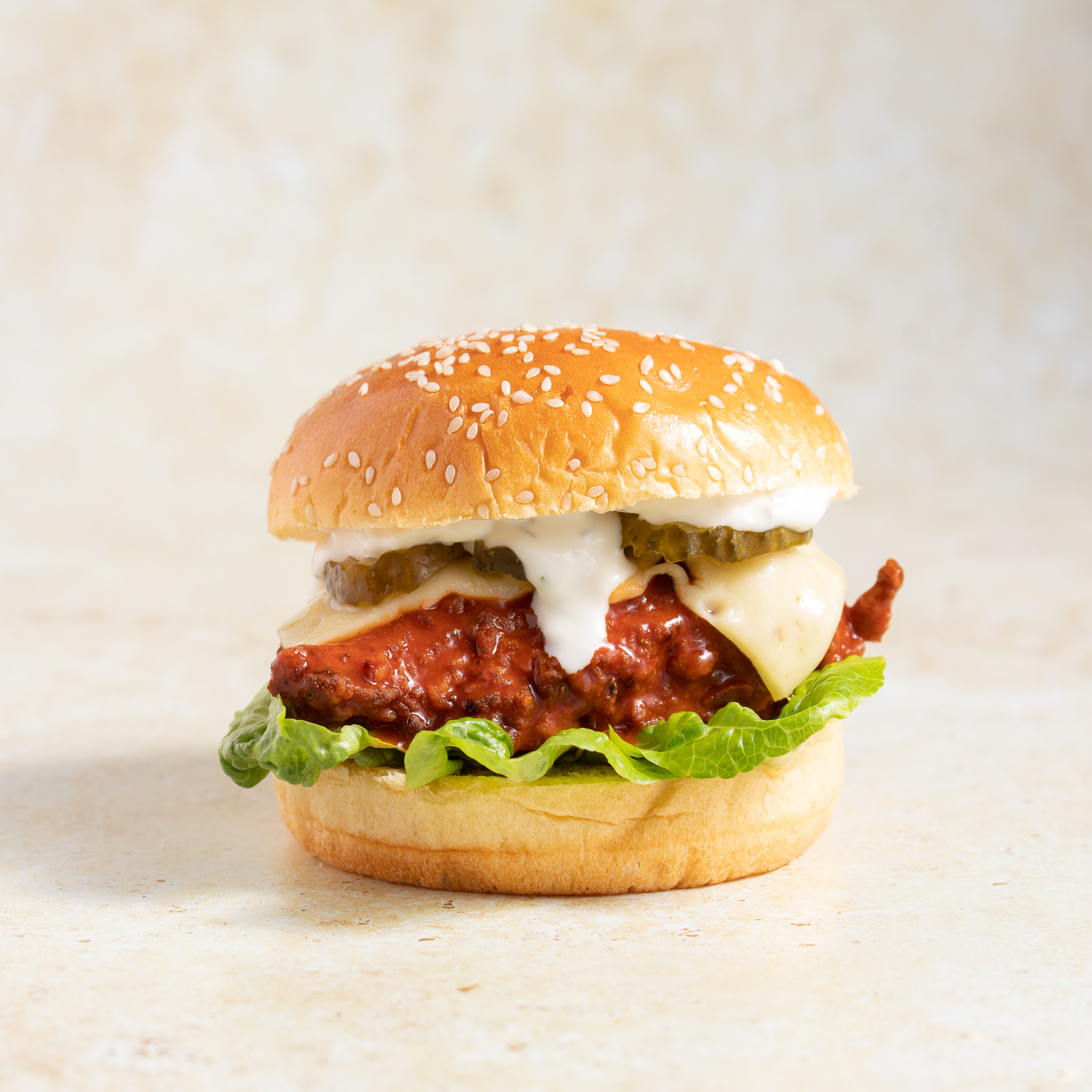 Crispy 100% Chicken Fillet bathed in buttermilk coated in our Epic & Spice blend with buffalo buttermilk ranch dressing, Cheese & Crispy lettuce. Served in a lightly Toasted Sesame Seed Bun.